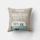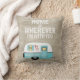 Anpassad familjens Namn (eller Couple's Namn som visas) hem är var jag än är med dig Camper Camping Travel Trailer RV dekorativ kudde. Whimiscal aqua blue camper med hjärtklaffar och med en rustik bakgrund som har en rustik stil "Hem är var jag än är med dig", citat. Anpassa den enkelt själv genom att lägga till din familj namn, första namn eller kamper namn till sidan av kamerasläpfordonet som visas.