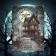 Hemma inbjudan till Gothic Halloween-vuxnor. Dö till kor grind för att dyka upp i dyster med denna mycket olycksbådande inbjudan från Halloween fest i vattenfärgen stil. Ett korkat getskt hemsökt hus ligger under en måne med fladdermus som flödar över månljuset. Ett väg med döskallar, en svart katt och jack O'-lyktor och flimrande lyktor på sidorna leder till huset. I scenen finns också järn grind, ljusglimtar och spöken. Hela scenen har slagits i en ondskefull glöd, förbättrad av en mörk grått-atmosfär som snurrar genom dimman och himmel. Varje detalj mördar ett uppseendeväckande välkomnande och denna inbjudan är perfekt för hemsökt hus party, dystra sammankomster och uppvuxna Halloween-soiréer där mysteriet möter måndagsljus.