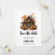 Spara datumkortet med en coola- och skämtbild av ett hemligt hus av trä. Omgiven av stora pumpor i orange och träd med orange löv. Windows med orange ljus lägger till en fin glöd. Roligt Halloween-design.