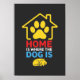 Varm och hjärtlig, Hemmet är där hunden är-designen har ett hus med tassavtryck och en illustration av en hopringlad hund. Perfekt för hundföräldrar som vet att deras hem inte är komplett utan sin lurviga vän.