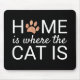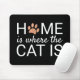 Lägg till elegant stil på ditt hemkontor med den här söta och roliga bildmusmattan med ord "hem är där katten är" i modern manustypografi, inklusive en metallisk ro-foliepappen för "o" i "hem" över en svart bakgrund.