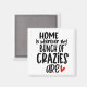 Roligt ord till visning på kylskåpet Hem är var min Crazies-bunch är i fet svart typografi med rött hjärtmotiv.
