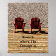Perfekt för dem som njuter av livet och slappnar av vid den land kustväggen poster. Brun burgundi, modern, chic, trendigets strandstolar på en hamnfotokonsthälsa. Tryckt personlig Adirondack-stolens hängkonstruktion. Underbar för pension-gåva. Frasen "hemmet är där stugan är". Anpassa texten efter teckensnitt storlekt, stil, färg eller ta bort om du vill. Leta efter matchande produkter i min butikssamling. Fotografi av bildomskrivning Marg Seregelyi.