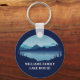 Den här coola anpassningsbar-nyckelkedjan i sjö har en serenblå flod omgiven av träd och din personlig för familjeåterförening, camping resa eller sommarsemester. Anpassa med ditt efternamn eller med andra namn-grupper.