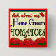 Fråga om mina hemodlade tomater. En vintage ser ut som retro tomato-reklamskylt för trädgårdsmästare och tomatsnober. Lustigt ord och gåvor från trädgårdsmästare.