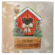Den här keramiska plattan har en bild av ett litet rött fågelhus med en hjärtinfarkt som är förskönad med en vit båge. På vardera sidan om huset finns gräs boughs, gräs cones och polkagrisar. En liten fågellips på tak och en träskylt som säger "Home Sweet Home" hänger på framsidan. Bilden placeras på en snöflingshögts bakgrund. Söt till ditt kök eller Helgdag bord!