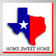 En poster för Texaner med bild i Texas och det står "Home Sweet Home Home"