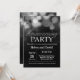 Inbjudan till uppvärmningspartiet. Hemsöt hem. Svarta och Silver Glitter-bakgrund.
