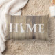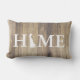 Rustik elegant lumbalkudde med en bakgrund av lätta träplankar, där ord "HOME" och "O" är en silhuett av delstaten Delaware. Baksidan har din familj namn i vit text.
