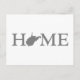 Med ordet hem i stora feta versaler där bokstaven ”O” är ersatt av en siluettkarta över den bergiga delstaten West Virginia med en enfärgad grå bakgrund gör detta västvirginiska hemstatskonstkort till ett perfekt sätt att hålla kontakten med någon från West Virginia.