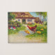 Hen och hennes chickar upptäcker Påskägg under buss. Motiv på vykort för vintage från omkring 1920 med ett jordbruks- och landsbygdslandskap.