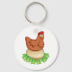 En höna sitta på ett guldägg med pengar under det. Den här designen ser ut att vara effektiv i den här nyckelkedjan
