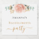 För en henfest med tjejerna. En chic vit bakgrund. Dekorerad med en akvarellmålad rose gold, rosafärgad blommig, blomma (ros) och gröna akvarellmålade eukalyptusblad, kvistar, grönska och en falsk guld kvist. Personifiera och lägg till namnet på bruden. Med texten: Henfest. Svarta och gyllene bokstäver.