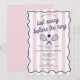 En färgrik handritad tennis tema design för henfest. En vacker design perfekt för henfest på helgen. Denna inbjudan till henfest inkluderar din anpassade text och olika färgval. En retro modern vintage blå, rosa och vit randig inbjudan till henfest på helgen.