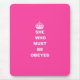 Roliga kvinna parodi av slogan för vintagebehållalugn med henne som måste lydas på en ljus flickaktigt rosa kronan eller tiara för princess för för bakgrundsfärg och vit den kungliga. Besöka CUSTOMIZEDGIFTS-LAGRET för att matcha produkter och mer inspirerade typografidesigner för behålla lugn