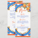 Hon hittade sin huvudblåa orange-menymall för möhippa, blått Majjolica Spanska medelhavsbrickor med modernt avslappnad-skript, trevligt för personlig-menykort för utomhusfunktioner på sommaren.