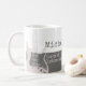 En feminin rosa och vit kaffekopp med personligt namn och yrke