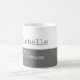 En feminin rosa och vit kaffekopp med personligt namn och yrke