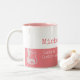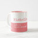 En feminin rosa och vit kaffekopp med personligt namn och yrke