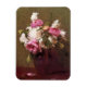 Henri Fantin-Latour Peonies och Ro magnet. Fransk konstnären Henri Fantin-Latour är en av de underbara blommålarna för Western konst. White Peonies, Ro och Narcissus skildrar en blombukett i lila vas med ljust grönt bakgrund. Blommornas blommar är färska och vibrerande och några petalster har fallit till bord. Ro rosa står i skarp kontrast till de vita blommorna av peonier och narcissus. En vacker gåva till fläkt av Henri Fantin-Latour, blommor och Fransk konst.