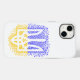 Den ukrainska nationella emblemets trident tryzub-kontur som består av många spridda blå och gult stjärnor