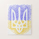 Den ukrainska nationella emblemets trident tryzub-kontur som består av många spridda blå och gult stjärnor