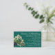Affärskortmall för den herbist- eller örtsäljaren. Mörk teal färg med vit text som ska anpassas i tre ställe på framsidan. Inkludera namn i skript, "herbalist" eller annan tryckt text under och mer information i stycket nedan. All text justeras mot högerna. Utformningen har vita feberfet blommor, lakritsrot och mörk lila elderbär. Herbbilden finns på den lämnat sidan. Kortets baksida är ljusbenvit med bakgrunden mönster av en pil och feberfå blommor.