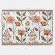 Das Bild zeigt ein anmutiges Muster aus stilisierten Blumen in warmen Orange- und Brauntönen, umgeben von grünen Blättern und zarten Zweigen. Die harmonische Wiederholung der Elemente strahlt eine ruhige Herbststimmung aus, die Wärme und Natürlichkeit vermittelt. Es erzeugt ein Gefühl von Geborgenheit und ästhetischem Gleichgewicht.