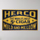 Hercocigar är en vintage-tobaksetikett från 1900-talet. En mörk blått bakgrund med ord Herco World's Best 5 Cigar Mild and Mellow.