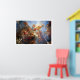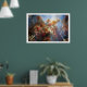 Det här är en lågupplöst bild för webben, den utskrift du får har vassa detaljer. Bilden togs på plats av Minerva Bloom. Hela målningen av Apotheosis of Hercules av Francois Lemoyne, 1733-1736. Olja på canvas vid Hercules Salon, Grand Apartment i Versailles Palace, Frankrike. Det nyligen återupprättade taket för Hercules Salon, ungefär 480 kvadratmeter av yta, är en av de största målningarna som någonsin utförts. Francois Lemoyne gjorde därmed en verklig bedrift, för han målade nästan hela ensamen under tre långa år. Den gav honom den eftertraktade titeln "Första Painter" till Kung, men den utmattade konstnären begick självmord kort därefter. Taket är inte ett fresco, eftersom färgen applicerades på duk i stället för direkt på gips. Ungefär 140 figurer, som företräder Olympus, deltar i Hercules triumferande ankomst, en hjälte vars framgångsrika arbete har fört honom till Guds rang (en anspelning på Franskens kung).