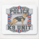Enhet K9 med den tyska herdehunden med polishundvesten på. Övrebokstäver för enheten K9 och förser med polis lower bokstäver. Underbaren för K9 kommenderar, och deras hund blir partner med!