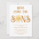 Here Come The Sons Twin Boys Baby Shower Inbjudningar