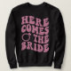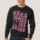 Here Comes Bride Groovy Groom Engaged Mrs Bachelor Lång Ärmad Tröja