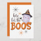 This Halloween card is a playful blend of charm and spookiness, perfect for sending festive greetings. The front features an adorable ghost, donned in a whimsical black and orange striped witch's hat, holding a glass of wine in its translucent hand. The cheeky caption, “Here for the Boos,” adds a punny twist, making it a delightful choice for those who enjoy a dash of humor with their Halloween spirit. On the back, the card offers a customizable message section where you can add a personal touch by including your own hauntingly heartfelt note and signing your names, making it a memorable keepsake for the recipient.