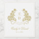 This design features golden and white heritage crest, delicate monogram initials, elegant script typography, a subtle luxury linen texture, with a detailed botanical leaf engraving pattern in golden color. Perfect for classic, royal-themed, old-money, and formal black-tie weddings. This product can be easily personalized. If you need help with the customization of the product or need matching products kindly please contact me via Zazzle.