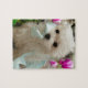 Denna produkt presenterar Hermes, för valphund för sötsak ett lite maltesiskt anseende bland några älskvärda vårtulpan.