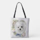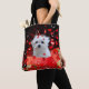 Denna är min gulliga lite maltesiska valp, hund somsitta i en gåva boxas i en dusch av röda hjärtor, och på baksidaen innehålls hans lite ansikte i en mjuk blom- hjärta.