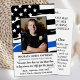 Tunt Blue Line Polis Memorial Prayer Card i en modern amerikansk flagga i polisens flagga. Anpassa polisens minneskort med din polismans foto, avdelning, namn & data. Perfekt för polismyndigheter att hedra en dödad polis och tillsatta lagar minnesmärken. "Underbarare kärlek har inget annat än detta: att ljuga ner sitt liv för sina vänner." John 15:13 ~ Bakåtcitat: "A Hero är..Någon som har gett sitt liv till något underbarare än sig själv och bön "Vi håller dig nära". Var snäll och kom ut om du vill ha en bön till anpassningsbarna. COPYRIGHT © 2020 Judy Burrows, Black Hund Art - Med alla Höger reserverade. Hero Polischef Memorial Funeral Prayer Card