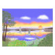 Modern scenkonst och färgstark. A sjö, blå och orange himlar, låg sol, reflektioner i vatten och tre Heroner. Fotoutskrifter, kanvastryck och kort.