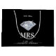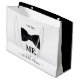 En elegant svart-vit brölloppsdesign perfekt för nygifta. Presentpåsen är designad i svart och vitt med en stilren svart fluga för "Herr" och en vacker gnistrande diamant för "Fru". Det fastställda datumet finns längst upp och kan anpassas till er bröllopsdag eller ett minnesvärt datum i era liv. Ett elegant skrivstils-teckensnitt används för brudens och brudgummens namn längst ned. Anpassa texten och gör den till er egen.