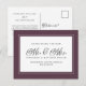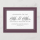 Herr & fru Nyligen gifta Elopement Lila Elegant Inbjudan Vykort