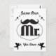 Mustasch Inbjudan. Klicka bara på redigera/personifiera/anpassa ytterligare och lägg till dina detaljer genom att klicka på knappen lägg till text högst upp till vänster om designverktyget. Ha kul med att lägga till din egen typografi till detta roliga retro cottagecore bröllopskort. Eller använd som ett roligt bröllopsdags fotoproppkort för brudgummen och gästerna för massor av roliga foton för alla!