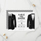 Låt alla veta att ni två har bestämt ett datum för er bröllopsdag med detta moderna "save the date"-kort med två svarta kostymer. Personalisera genom att lägga till era namn, datum och bröllopsplats.