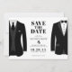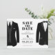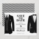 Låt alla veta att ni två har bestämt er för ett datum för er bröllop med detta moderna "save the date"-kort med två svarta kostymer. Personifiera genom att lägga till era namn, datum och bröllopsplats.