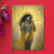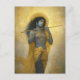 Herr Krishna spelar flöjt i guld-gul konst Vykort