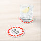 Herr och fru bröllop underlägg med rött hjärta. Elegantens pappra underlägg i rund eller avkortad form. Klassdesign med snyggtens penselskripttypografi och anpassningsbarnas efternamn. Tillbehör till trendig party och dekorationer i bord för gifta par och nygifta. Använda för chicens möhippa, lyxen bröllop, finare-årsdagen firande osv. Ändra kvantitet för att få den billigaste prisa massan. Romantisk kärlek-symboldesign med datum för giftermål.