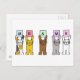Tecknad katter som håller upp pastellkort för färgad som har brev på detta anger "Mr. och Mr.".