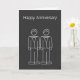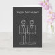 Herr och herr Grattis på årsdagen .. två bröllopsgroddar hälsningskort med två doodlebrudar i vitt på en falsk svart kritskiva bakgrund .. gay bröllopsdag gratulationer designer gay-kort från Ricaso