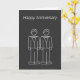 Herr och herr Lycka till på årsdagen .. två brudgummar gratulationskort med två doodlebrudgumma i vitt på en falsk svart bakgrund .. homosexuellt bröllopsjubileum gratulationer designer homosexuella kort från Ricaso