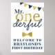 Denna Herr Onederful Blå och Guld Första Födelsedags Välkomstaffisch är perfekt för att välkomna dina vänner till en underbar första födelsedagsfest!